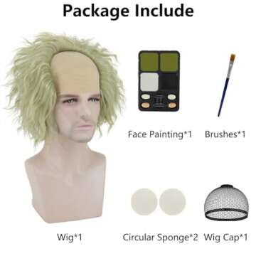 Ruina Wigs for Costume Men with Makeup Set Green Wig for Scary Halloween Costume Men Cute Wavy Short Green Wigs for Halloween Costume Cosplay R057