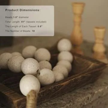 Show more Elevate your home decor with the exquisite RUIRUICO Extra Large Wood Bead Garland. Featuring chunky 1.6-inch (40mm) wooden beads, this garland is designed to make a statement in any room. The rustic white color beautifully complements various interior styles, from boho chic to farmhouse charm. Crafted with care, each bead is polished to a smooth finish, giving it a subtle yet elegant appeal that stands out against any backdrop. With its generous length of 41 inches, you can creatively drape, layer, or display it across your shelves, mantles, or dining tables, adding a touch of whimsy and warmth to your home.