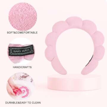 Show moreExperience a transformative skincare routine with the Ruiwen Hair Spa Headband for Washing Face. This exceptional set includes three beautiful headbands in lovely shades of pink and light green, designed to pamper your skin while keeping your hair effortlessly away from your face. Crafted from luxurious terry cloth, each headband features a unique bubble soft puffy design that adds a touch of elegance to your beauty regimen. Featuring a versatile design, this headband is perfect for a range of activities, including makeup application, face washing, and even spa treatments. The adjustable closure ensures a perfect fit for everyone, allowing you to focus on your relaxation and skincare without any distractions.