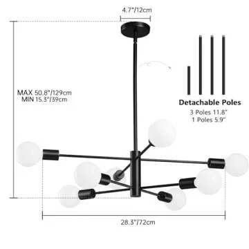 Designed to provide optimal lighting, the chandelier features 8 E26 bulb sockets that support a range of lighting options, including LED, Edison, incandescent, and more. With a maximum wattage of 60W per bulb, it delivers substantial brightness, ideal for both quiet dinners and lively gatherings. This fixture is also compatible with dimmable bulbs and switches, allowing you to effortlessly adjust the light intensity to suit your mood.