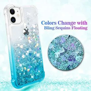 Ruky Glitter Case for iPhone 11 Case for Girls, Gradient Quicksand Series Bling Flowing Liquid Floating Soft TPU Bumper Cushion Women Case for iPhone 11 6.1 inches 2019 (Gradient Teal)
