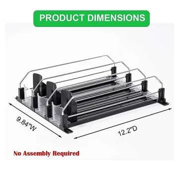 Rula Drink Organizer for Fridge, Self-Pushing Soda Can Dispenser for Mini Refrigerator, Width Adjustable Water Bottle Pusher Glide, Black, 3 Rows,12.2” D