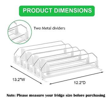 Assembly is a breeze with detailed instructions provided, ensuring you can get started in less than five minutes. The product dimensions are 12.2"D x 13"W, so be sure to measure your fridge to ensure a perfect fit. Say goodbye to cluttered drink spaces and hello to effortless organization!