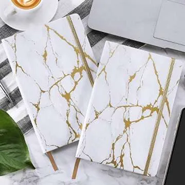 Ruled Notebook/Journal - Hardcover Lined Notebook with Premium Thick Paper, College Lined Journal, 5.8"×8.4", Gold & White Marble Pattern, Perfect for Office Home School Business Writing & Note Taking