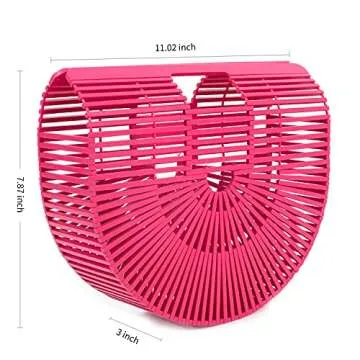 RULER TRUTH Women's Bamboo Handbag Small Straw Purses and Handbags Handmade Woven Tote Bag for Summer Beach Pink Red