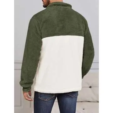 Runcati Men's Quarter Zip Fuzzy Sherpa Sweatshirt Pullover - Color Block Comfort