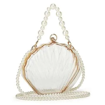 Rungion Fairy Shell Purse Elegant Evening Bag Clear Handbag with Pearls