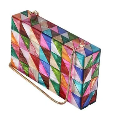 Runhetian Acrylic Clutch Purse Perspex Box Handbags for Women Colorful Geometry Desiger