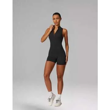 Show moreIntroducing the **Running Sanzi Women Zip Front V Neck Sleeveless Jumpsuit*, an essential addition to your activewear wardrobe that combines aesthetics with functionality. Crafted from *buttery soft, skin-friendly fabric*, this jumpsuit is lightweight and breathable, ensuring comfort during your workouts and daily activities. It's designed to be moisture-wicking and quick-drying, making it the perfect companion for heat and sweat. The *4-way stretch* allows for excellent flexibility, promoting both *compression and a fabulous butt-lifting silhouette*, helping you feel confident and stylish wherever you go.