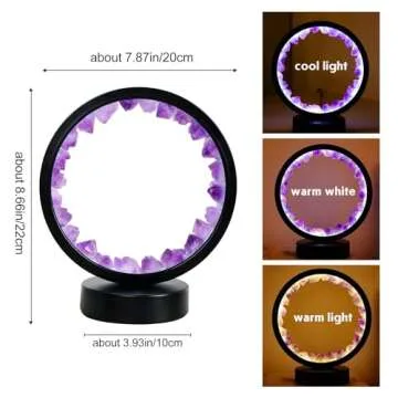 Runyangshi Amethyst Tooth Night Lamp 8.6" Natural Healing Crystal Bedside Lamp USB Port 3 Colours Dimming Mode Bedroom Lamp Suitable Night Light Ideal Gift