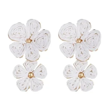 RUOFFETA Raffia Flower Earrings, Raffia Straw Wrapped Flower Drop Dangle Earrings Summer Tropical Beach Jewelry(White B)
