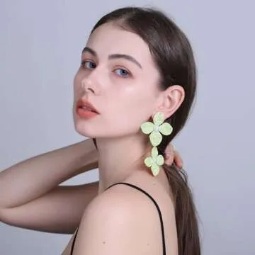 The floral design features two vibrant flowers that cascade beautifully from the earlobe, exuding a playful and elegant aesthetic. Measuring approximately 9.5 x 5 cm (3.7 x 1.9 inches), these earrings are substantial enough to make a statement yet understated enough to suit any outfit. Whether paired with a sundress at a beach party or casual jeans for a day out, they’ll effortlessly elevate your look.