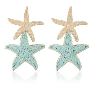RUOFFETA Raffia Starfish Earrings, Raffia Straw Wrapped Starfish Drop Dangle Earrings Summer Tropical Beach Jewelry(Pea Green A)
