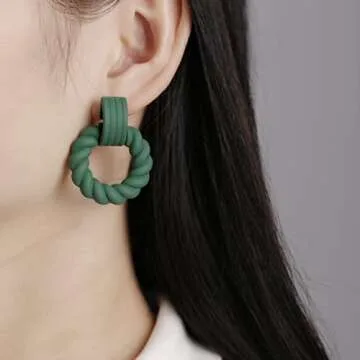 RUOFFETA Rectangle Earrings for Women, Acrylic Square Earrings Twisted Geometric Statement Earrings(Dark Green Round)
