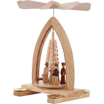 Show more Experience the magic of Christmas with the exquisite Rusepin German Christmas Pyramid - Nativity Scene. This stunning 25cm (10 inch) round pyramid is a delightful centerpiece for your holiday décor, handcrafted in Germany by the renowned Erzgebirge Handcraft. Made from high-quality wood, this unique artwork showcases vibrant colors that bring the beloved nativity scene to life, featuring intricate details of Mary, Joseph, baby Jesus, shepherds, and the three wise men. Unlike ordinary decorations, this festive pyramid embodies a rich tradition that not only enhances the beauty of your home but also tells a heartwarming story of the season.