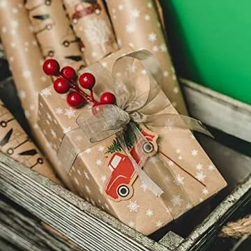 RUSPEPA Christmas Wrapping Paper, Kraft Paper - Cars, Trees and Star Style Designs - 4 Rolls - 30 inches x 10 feet per Roll