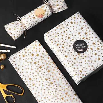 RUSPEPA Gift Wrapping Tissue Paper - Metallic Gold Star Print Tissue Paper Bulk for Gift Wrap, Art Crafts, DIY, Pack Bags - 19.5 x 27.5 inches - 25 Sheets