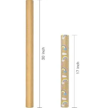 RUSPEPA Kraft Wrapping Paper Roll - Mini Roll - Rainbow Design Great for Birthday, Party, Baby Shower - 17 Inches X 32.8 Feet