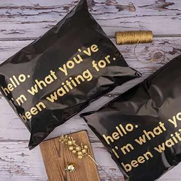 Show moreIntroducing the RUSPEPA 50 Pack Self-Sealing Poly Mailer Bags, the ideal solution for small businesses that not only need to ensure the safe delivery of their products but also want to present them in a chic and professional manner. Each pack contains 50 expertly designed poly mailers, each measuring 12 x 15.5 inches – perfect for securely shipping everything from dress shirts and gift items to delicate fabrics and online purchases. Uniquely adorned with the catchy tagline "hello. I'm what you've been waiting for," these bags are available in four elegant colors: black, pink, white, and mint. Crafted from heavy-duty polyethylene with a thickness of 2.3 Mil, these poly mailers offer both durability and appeal, ensuring your items remain protected and stunning throughout their journey.