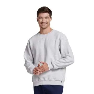 The Russell Athletic Men's Dri-Power Fleece Crew is available in multiple sizes, from Small to XX-Large.