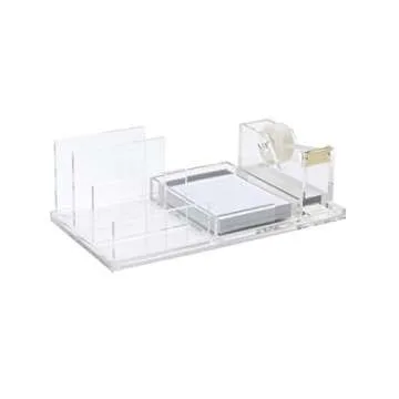 Show moreIntroducing the RUSSELL+HAZEL Acrylic Bloc Wide Accessory Tray, your ultimate solution for keeping your workspace immaculate and organized. This sleek and chic clear acrylic tray is meticulously designed to not only support the crucial task of desktop organization but to also enhance the aesthetic appeal of your desk or dressing table. With dimensions of 7.18” x 12.2” x 0.5”, it offers the perfect balance between functionality and style, capable of accommodating a variety of common desk items—from mail and office supplies to beauty products and decorative elements. Whether you’re looking to elevate the look of your workspace or find an aesthetically pleasing way to manage clutter, this tray seamlessly blends modern sophistication with utility.