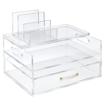 Show moreTransform your workspace into a sleek and organized haven with the Russell+Hazel Acrylic Medium Solution Set. This thoughtfully designed set includes an acrylic inbox, a wide acrylic bloc tray, and a mini collator, expertly crafted to blend style with functionality. Measuring 14” x 14” x 14”, this medium solution provides a modest yet impactful presence, allowing you to declutter your space while elegantly displaying your essentials.