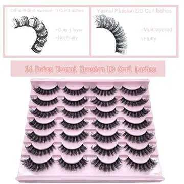 Russian Strip Lashes Yasnai DD Curl False Eyelashes Fluffy Cat eye Faux Mink Lashes Natural Eye Lashes 14 Pairs Pack