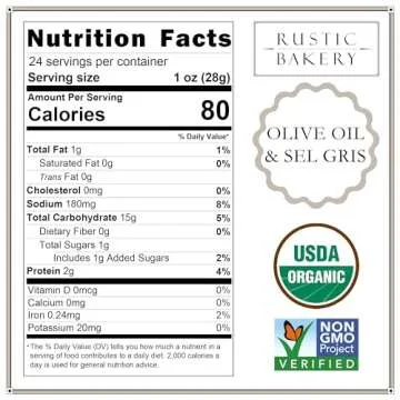 Show more Experience the exquisite taste of Rustic Bakery Handmade Sourdough Flatbread Crackers, a delightful addition to any cheese platter or snacking occasion. Crafted meticulously by hand in Sonoma County, California, these artisanal crackers reflect our passion for quality and simple, organic ingredients. Utilizing the same sourdough starter since 2005, each cracker is a testament to tradition and culinary excellence. The Olive Oil & Sel Gris flavor is particularly favored for its versatility, making it a perfect companion to a variety of cheeses and dips. Ideal for entertaining or a quiet night in, these delightful snacks will elevate your culinary experiences.