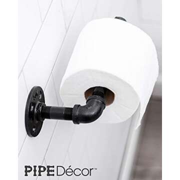 Rustic Industrial Pipe Toilet Paper Holder by Pipe Decor, Heavy Duty DIY Style, Wall Mounted Kit, Modern Chic Electroplated Black Iron Finish, Commercial Grade Metal, Slide TP Roller, Oil + Rust Free