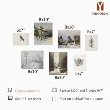 Rustic Snowy Winter Wall Decor - Vintage Farmhouse Holiday Room Decor - Christmas Wall Art - Boho French Country Bathroom Poster Print - Aesthetic Botanical Picture - Art Set of 7 Neutral Gallery Wall