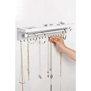 Show more Introducing the Rustic White Necklace Jewelry Organizer, the ultimate solution for jewelry enthusiasts looking to beautifully display and organize their cherished accessories! Perhaps you have several necklaces, bracelets, or even rings that deserve a dedicated space? With this elegantly designed organizer, you’ll find ample room to store and showcase each piece without fear of entanglement or damage. Its rustic charm not only complements a farmhouse décor but also serves as a practical addition to any room. Experience the transformation of your jewelry into an alluring display that becomes an instant focal point of inspiration in your home!