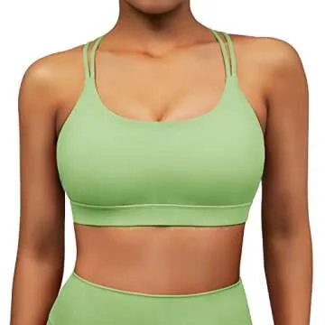 RUUHEE Women Workout Sports Bra Strappy Criss Cross Back Padded Yoga Crop Top(Small,Tender Greens-7)