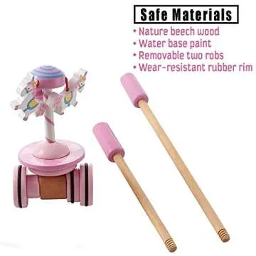 RUYU Lively Carousel Wooden Push and Pull Walking Toy for Toddlers and Babies Girl or Boy, Classic Early Learning Wooden Balance Walking Play Toy