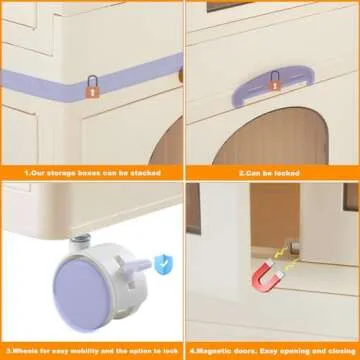 rwcoet Collapsible Stackable Storage Bins 8gal & 32L 3 Pack, Storage Cabinet with Lids and Doors, Craft Storage Bins with Open Front Doors and Wheels for Bedroom & Living Room