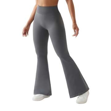 Show moreStep into style and comfort with the RXRXCOCO Seamless Scrunch Butt Lifting Flare Leggings designed specifically for the modern woman. These high-waisted bootcut yoga pants come in a chic grey hue, seamlessly blending fashion with functionality. The unique side contour textures not only enhance your leg shape but also provide an alluring ruched butt design that lifts and accentuates your curves, instilling you with confidence every time you wear them. Whether you're hitting the gym or stepping out for brunch, these leggings are the perfect companion for any occasion.