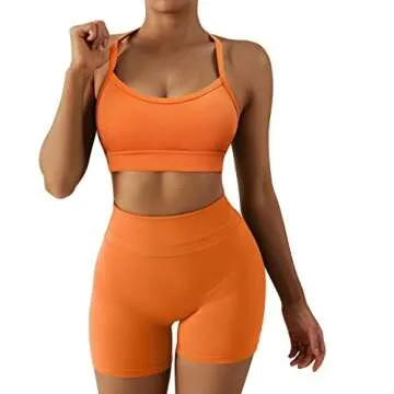 RXRXCOCO Women Padded Open Back Sports Bra Spaghetti Strap Racerback Low Impact Workout Yoga Bra Cropped Tank Tops(Orange,M)