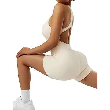 Show moreIntroducing the RXRXCOCO Women's Sexy Sleeveless Yoga Jumpsuit — your new go-to outfit that effortlessly combines style and functionality. This one-piece bodysuit features a unique deep scoop neck design and a backless silhouette that perfectly showcases your curves. With its 360° tummy control, this bodysuit not only smooths out rolls but also snatches your waist, ensuring you look your absolute best from every angle. The buttery soft fabric offers gentle compression, providing just the right amount of support for all your active needs while keeping you comfortable throughout the day.