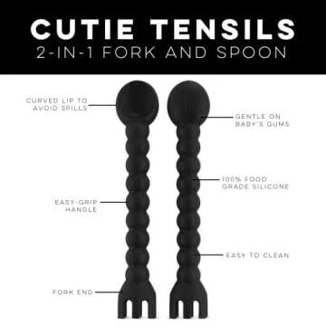 The unique design of the spoon allows for deep scooping capacity, making it a breeze to serve nutritious meals without spills, while the fork is ingeniously crafted with a small cup at the end, making it easy for your toddler to grasp food without it tumbling down. Whether it’s a vibrant puree or soft chunks, the Cutie Tensils ensure that food stays where it belongs—on the utensil and not all over your child’s clothes.