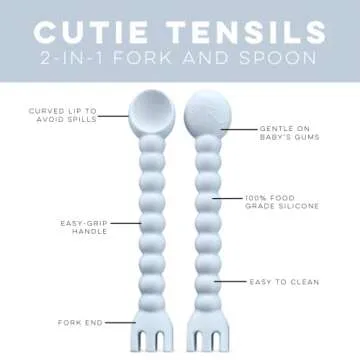 Ryan & Rose Cutie Tensils Baby Spoon and Fork [2 Pack] (Blue)