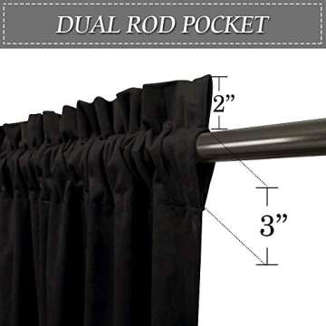 Show moreTransform your living space into a luxurious haven with RYB Home Black Velvet Curtains. These soft blackout window curtain panels not only enhance your decor with their opulent look, but they also serve practical functions that elevate your everyday experience. With each panel measuring 52 inches in width, you will have an impressive total width of 104 inches, making them a perfect fit for expansive windows in any room! Available in an array of beautiful tones, these curtains can seamlessly blend into both casual and rustic interiors or bring an elegant touch to sophisticated spaces.