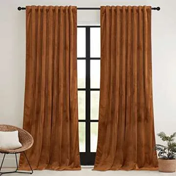 Show moreTransform your living space this autumn with the stunning RYB HOME Halloween Brunt Orange Velvet Curtains. Each package includes two generously sized panels, measuring 52 inches in width by 84 inches in length, creating a dramatic width of 104 inches when hung together. Crafted with exquisite plush velvet, these curtains not only embody elegance but also offer multiple hanging options thanks to their versatile pleat tape pocket, back loop (2.3 inches), and rod pocket (3.3 inches). Whether you prefer traditional pinch pleats or something more modern, these curtains provide a stylish solution that enhances any room's decor.