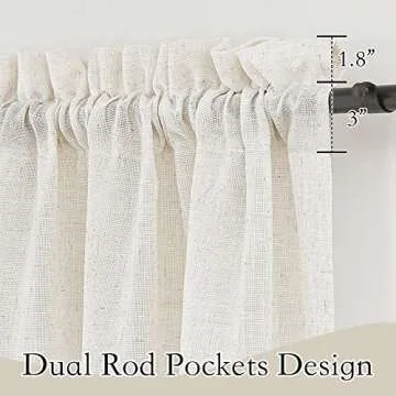 RYB HOME Semi Sheer Curtains - Linen Blend Semi Transparent Privacy Drapes Shabby Chic Light Filtering Extra Long Curtains for Farmhouse Home Office Laundry Room, 52" W x 120" L, 2 Panels, Linen