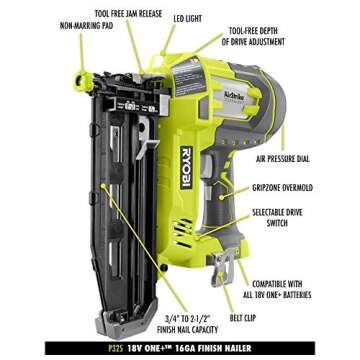 This product is ideal for a wide range of projects, from installing wainscoting and window trim to building wooden structures like trellises. Its lightweight design makes it easy to maneuver, and users have consistently praised its reliability and performance. No more struggling with heavy air tanks or dealing with the limitations of corded tools; the Ryobi finish nailer sets you free to bring your creative visions to life!