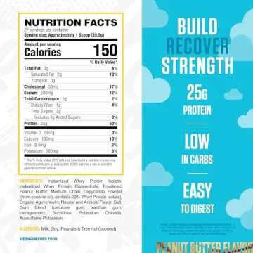 Each serving contains a generous 25g of protein, sourced from whey isolate and concentrate.