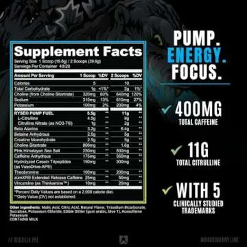 Ryse Noel Deyzel x Godzilla Pre Workout | Intense Pumps, Energy, & Focus | Citrulline & Beta Alanine | 400mg Total Caffeine | 40 Servings (Monsterberry Lime)