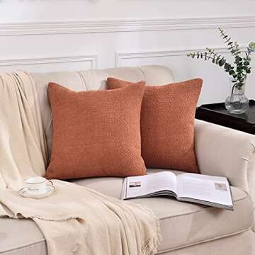Rythome Burnt Orange Textured Throw Pillow Covers Set of 2 for Stylish Home Decor - 18x18