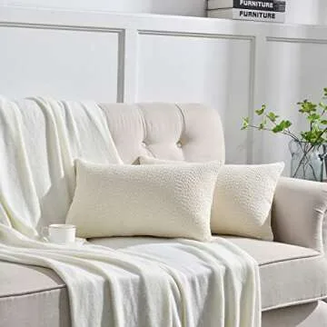 Rythome Set of 2 Cozy Fine Textured Throw Pillow Covers, Decorative Elegant Lumbar Pillow Cases for Couch Bed and Living Room - 12"x20", Ivory