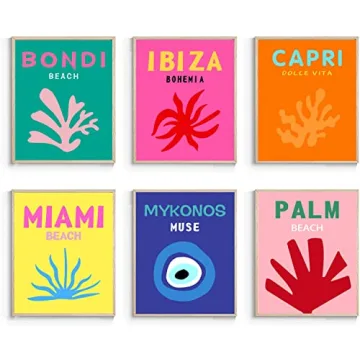 Show moreIntroducing the rythsans Preppy Stuff / Things Room Decor Aesthetic Canvas Wall Art Prints - a vibrant set of 6 prints that effortlessly infuses your space with charm and personality. Each print features exquisite images of iconic destinations including Bondi, Palm Beach, Capri, Miami, Ibiza, and Mykonos. Perfectly sized at 8x10 inches, these prints are ideal for creating a stunning gallery wall or adding a splash of color to any room. Whether you’re looking to enhance your own living space or surprise a loved one, these high-quality canvas prints are sure to delight and inspire.
