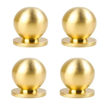 RZDEAL 4pcs Solid Brass Round Knobs - Elegant Gold Pulls for Cabinets