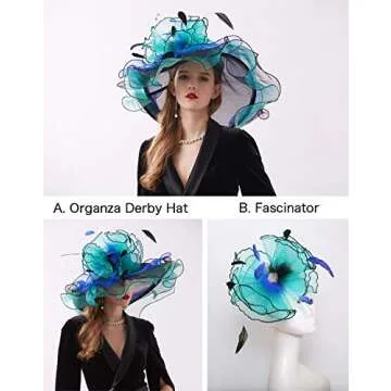 RZTA Women's Kentucky Derby Church Dress Hat Wide Brim Leaf Flower Bridal Shower Hat F1 Green